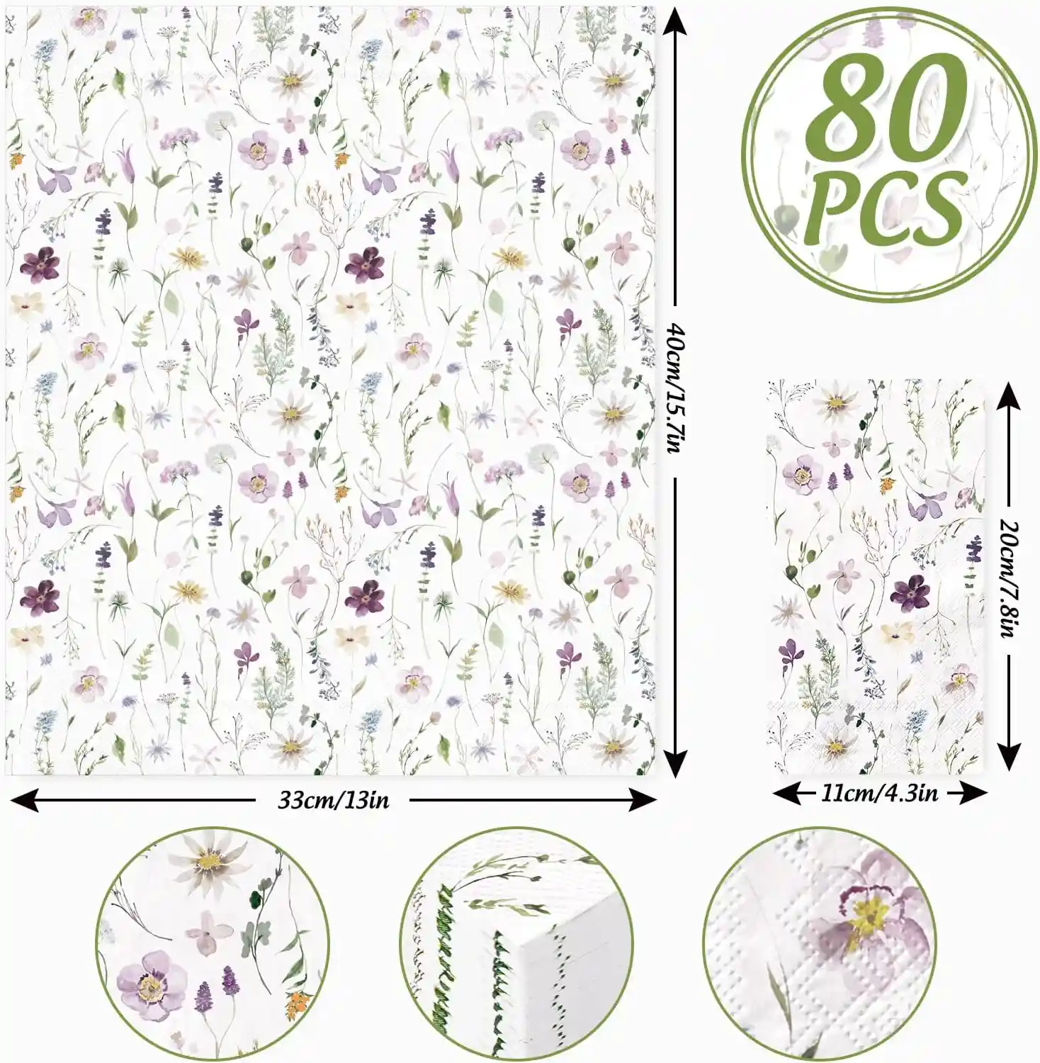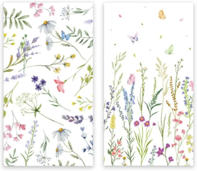 • ASIN ‏ : ‎ B0GGM7Y8KQ100 Sheets Spring Wildflower Napkins, Floral Disposable Paper Napkins with Flower Butterfly for Spring Wedding Birthday Tea Party Supplies 4.3″×7.9″