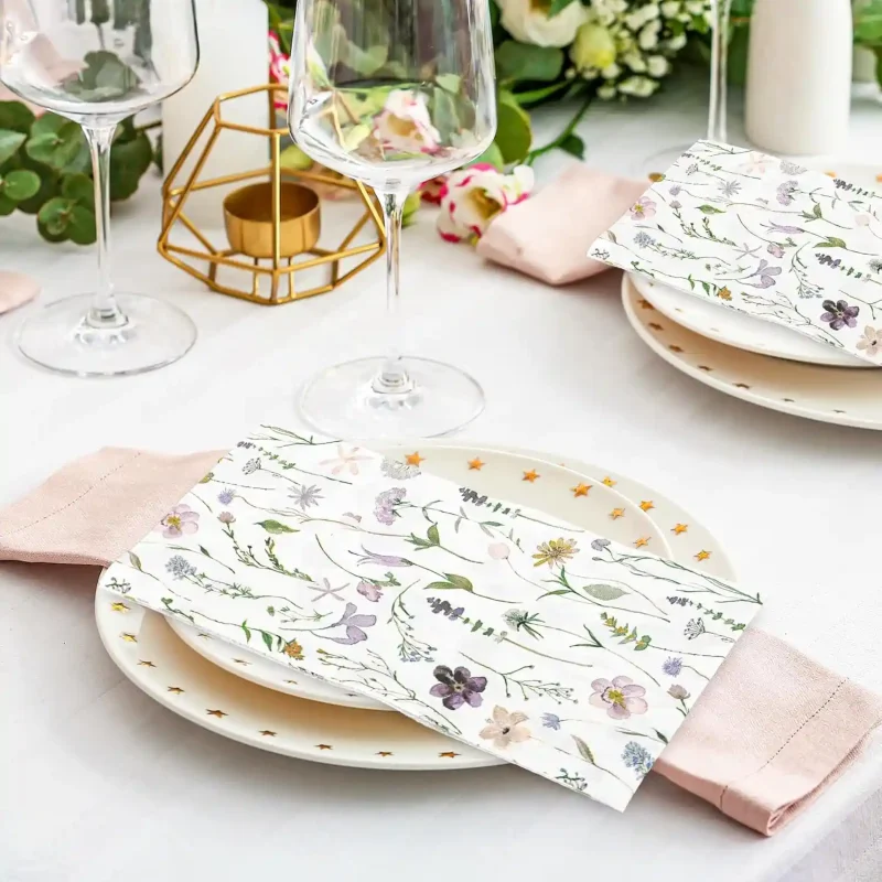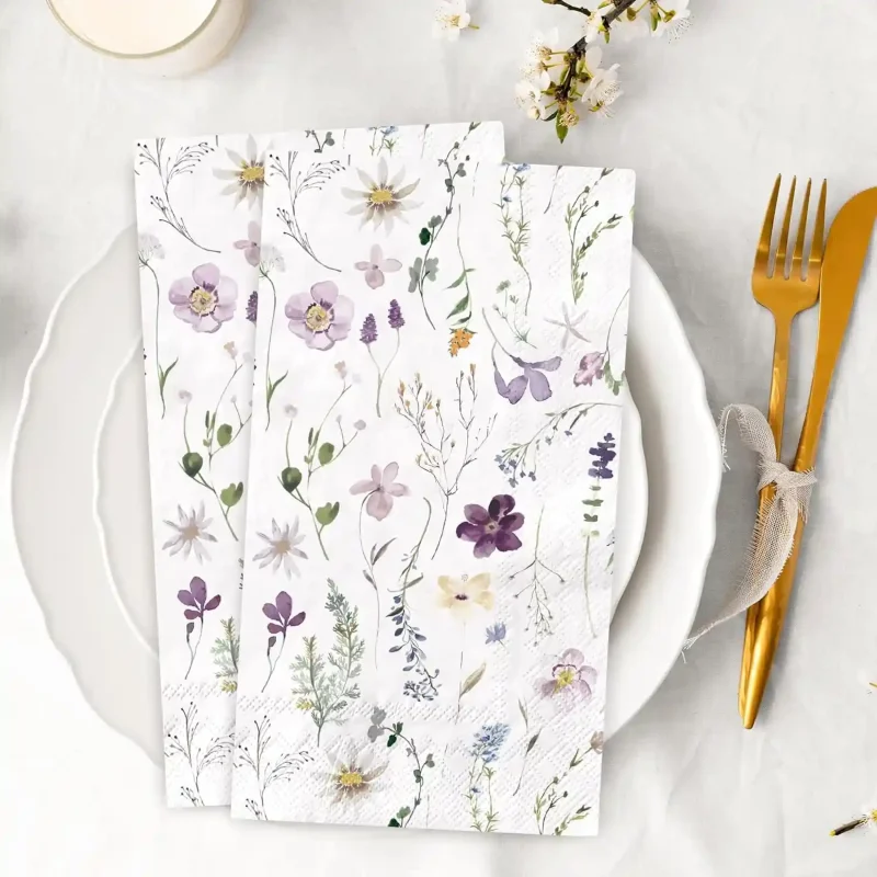 100 Sheets Spring Wildflower Napkins, Floral Disposable Paper Napkins with Flower Butterfly for Spring Wedding Birthday Tea Party Supplies 4.3″×7.9″