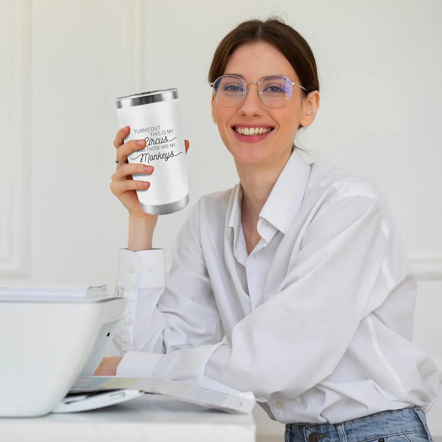CUPLOOV Crap Turns Out This Is My Circus Tumbler, Funny Birthday Mother’s Day Gift for Mom Boss Teacher Manger, 20 Oz White Stainless Steel Tumbler Cup Christmas Gifts Ideas