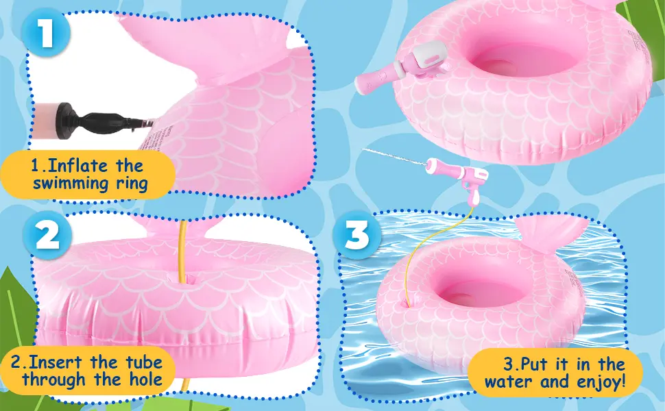 • Fun Pool Toys: You will receive a pool float for kids ages 3-5 with a pull-out water gun. The kids pool float features a unique mermaid design, with its end shaped likes a mermaid’s tail. Let children enjoy the summer water fun while experiencing the fairy-tale delight brought by the mermaid design